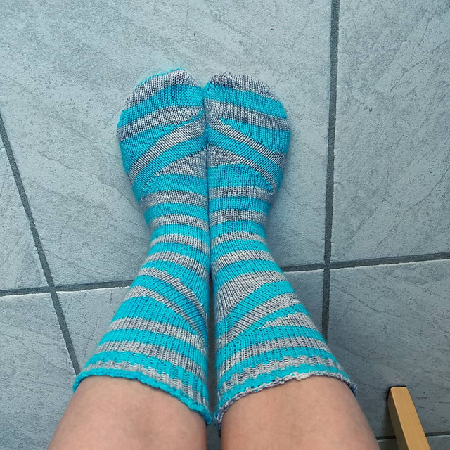 J'ai fait la taille S avec des aiguilles 2.5, et j'ai fait un talon Fish Lips Kiss Heel à la place de celui proposé.